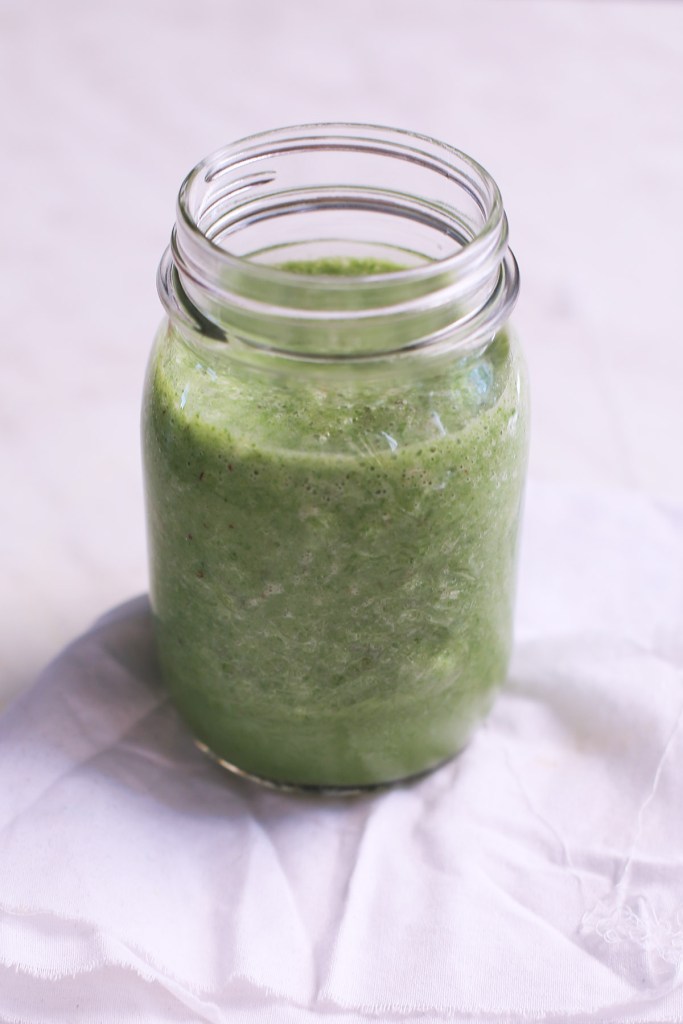 Alle Zutaten zusammen in einen Standmixer füllen und pürieren lassen. Ich lasse meinen immer so ca. 1 Minute pürieren, so sind keine Stücke mehr vorhanden und er ist richtig schön cremig.