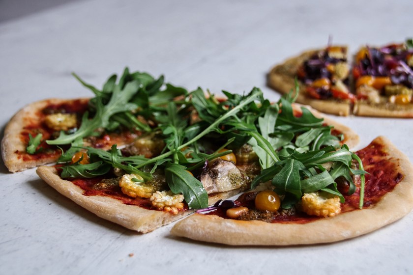 Eigentlich müsste ich es „Kater-Pizza“ nennen, denn meistens gibt’s bei uns am Tag nach dem Feiern Pizza…vom Stamm-Italiener geliefert oder selbstgemacht (je nach Gemütszustand;) ) Mein Herd kann natürlich nicht mit dem italienischen Holzofen mithalten, weswegen ein Pizzastein auf meiner Shoppingliste schon ganz oben steht. Falls jemand da Tipps oder Empfehlungen hat, gerne her damit! :) Meine Lieblingspizza besteht meistens aus Mais, Artischocken, Champignons, Mozzarella und roten Zwiebeln. Diesmal hab ich das Ganze noch etwas aufgepimpt und auch zwei verschiedene Soßenbeläge ausprobiert. Mein neuer Favorit ist eindeutig Pesto! Demnächst werde ich mich auch mal an einem Boden aus Vollkornmehl probieren. Lasst mich gerne wissen, mit was ihr eure Pizza so belegt. Ich freue mich auf Inspiration. Hier nun die Zutaten für 2 normal große Pizzen: Teig: 400 g Dinkelmehl 250 ml lauwarmes Wasser 1 Päckchen Hefe (trocken) 2-3 EL Olivenöl Zucker Salz Pesto: 1 großer Bund Basilikum 50 g Parmesan 25 g Pinienkerne 1/2 Zitrone (ausgepresst) Olivenöl Salz Pfeffer Belag: Pesto Tomatenmark Mini-Maiskolben Tomaten (verschiedene Sorten) Büffelmozzarella Rote Zwiebeln Pinienkerne Champignons Rucola Rettich-Kresse 1. Pizzateig: Zuerst gebt …