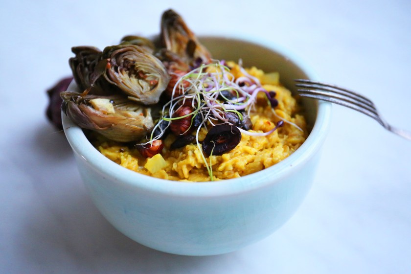 Abends essen wir relativ häufig Salat. Er geht schnell, ist nicht zu schwer und schmeckt uns beiden gut. Damit das nicht zu langweilig wird, mache ich immer gerne verschiedene Toppings dazu. Zur Zeit haben wir immer dieses Senf-Granola oben auf unseren Salat gegeben. Es macht das Ganze noch etwas deftiger, gibt einen gewissen Biss dazu und schmeckt einfach super lecker. Dieses Granola kann man von den Nüssen her variieren wie man mag, wichtig ist hierbei, die Nüsse (Haselnüsse) etwas aufzubrechen, sonst werden sie im Ofen zu kleinen tickenden Zeitbomben. Ich bin generell ein großer Fan von Senf, bin mir aber sicher, dass das Ganze auch super mit Meerrettich schmecken könnte. Probiert es doch einfach einmal aus :) Zutaten (für ein großes Einmachglas): 1 handvoll Haselnüsse 1 handvoll Sonnenblumenkerne 1 handvoll Walnüsse 1 handvoll Kürbiskerne 1 handvoll Haferflocken 4 EL Senf (mittelscharf) 4 EL Kokosöl (geschmolzen) 1 Prise Salz 1 TL Curry 1. Alle Zutaten zusammen in einer großen Schüssel vermischen bis alle Nüsse mit einer Schicht der Senfmasse ummantelt sind. Auf einem großen Backblech verteilen und …